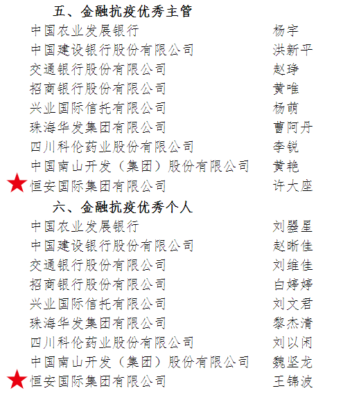 与此同时,在《2020年度结算业务和集中清算业务优秀主管和优秀个人》评选中,德扑之星集团资本运营总裁许大座荣获“金融抗疫优秀主管”,资本运营投资总裁助理王锦波荣获“金融抗疫优秀个人”。